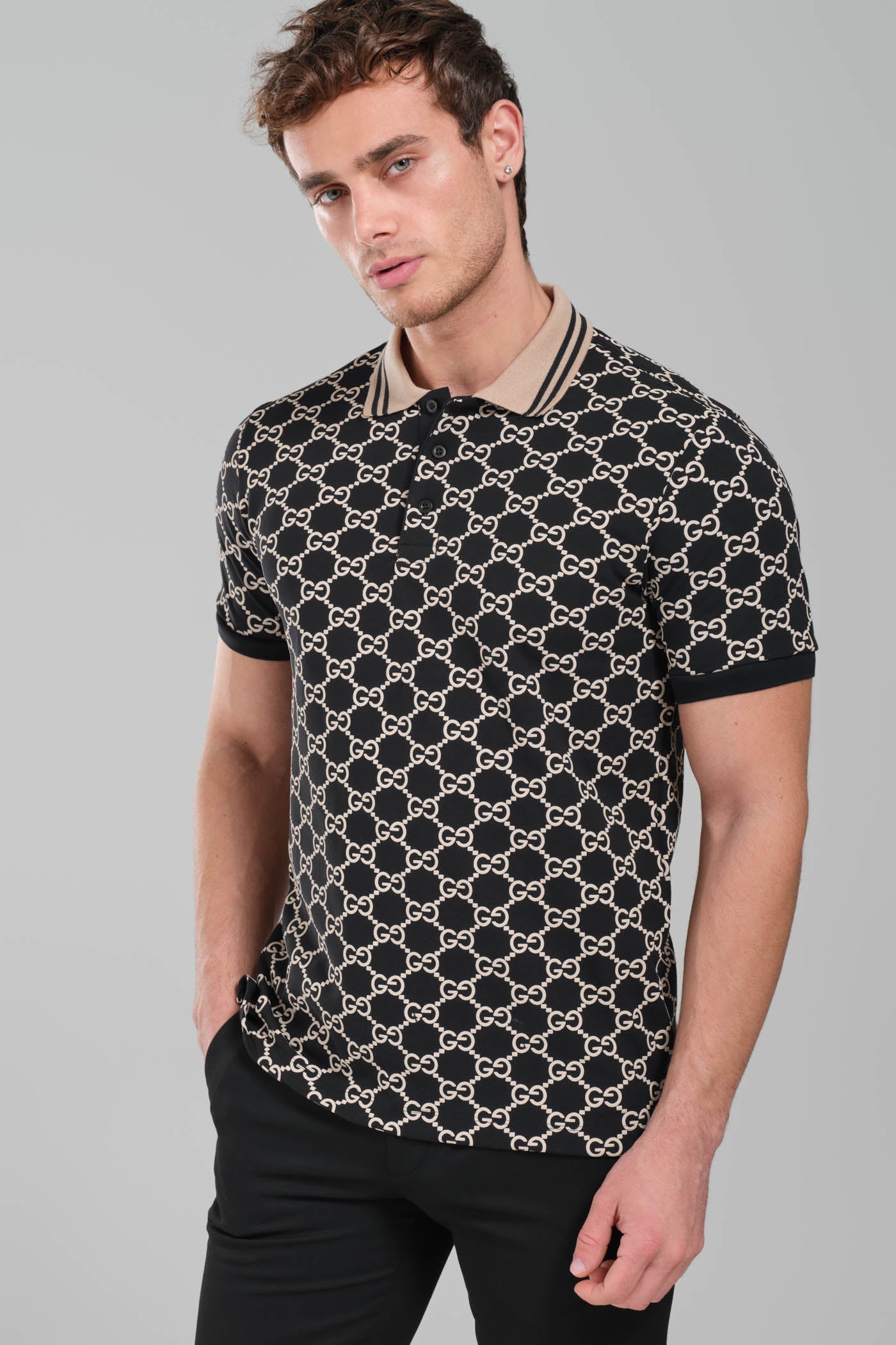 Gucci GG Monogram Polo Shirt – Black/Beige